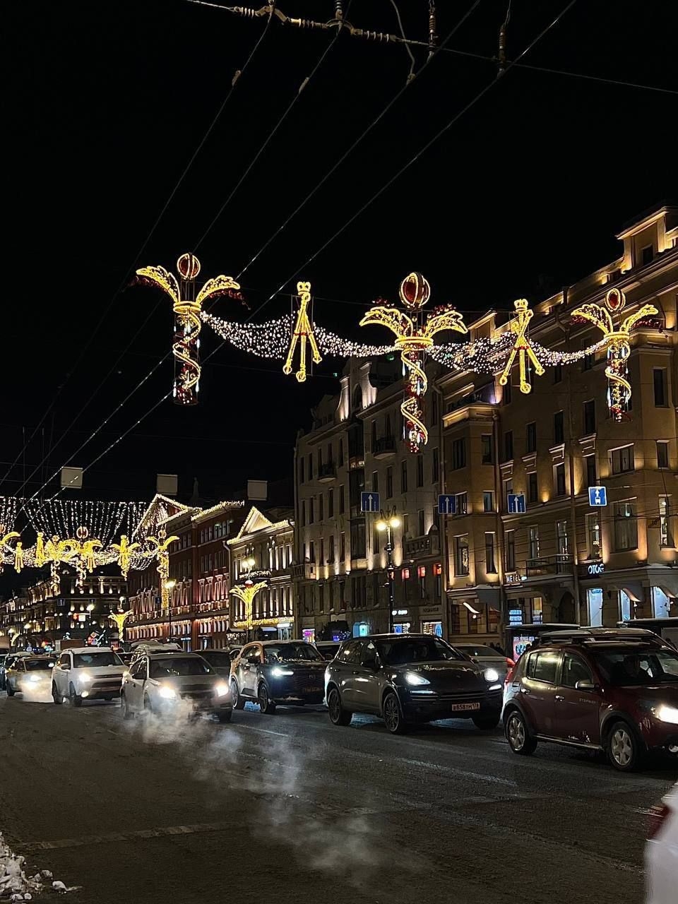 🎄В декабре этот угол Петербурга превращается в живую открытку: огни, гирлянды, отражения в снегу и праздничный Невский, который сияет весь вечер💫